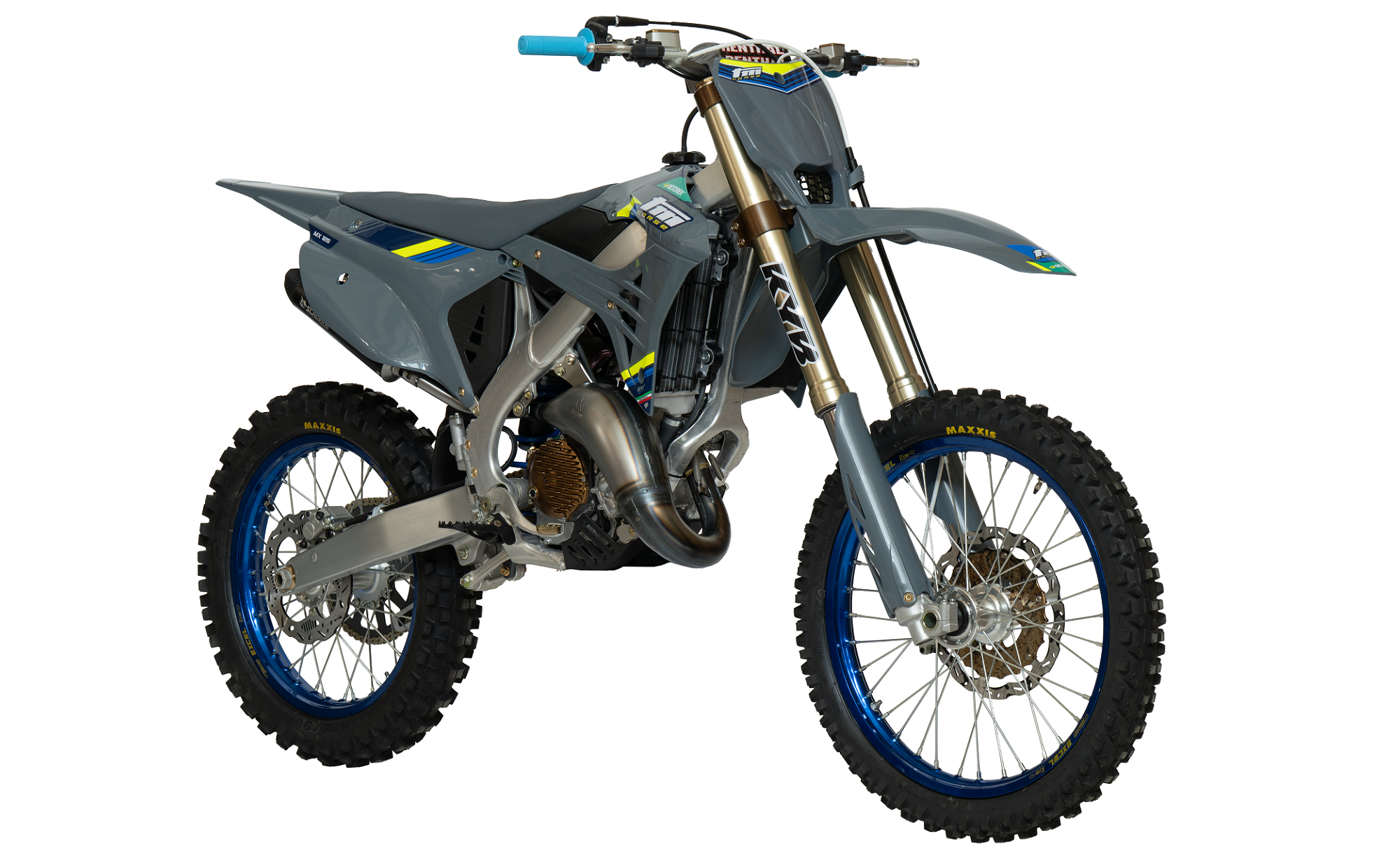 The high-end specification of all TM Racing machines is well-versed and this model year is no exception. The specification list for a ‘production machine’ is vast and features numerous high-quality components throughout. We have have several small changes and revisions to further enhance the chassis that was already designed to improve handling, weight balance, overall machine weight (reduced), rider ergonomics and the visual look. All variants chassis’ and sub-frames will once again be constructed using aluminium, with each engine ‘capacity’ / variant having a chassis unique to that engine displacement. This ‘tailoring’ of the chassis to engine allows TM Racing to design and build each machine for minimal weight, compactness, and better handling characteristics with mass centralisation specific to each model whether 2-stroke or 4-stroke. All chassis are constructed using the latest design elements that reduce overall chassis weight whilst maintaining maximum strength, matched to new revisions in chassis geometry / triple clamp angles that are specifically tailored to each model once again, allowing the best in handling characteristics for each model in the range. On all models, the now standard fitment KYB 48mm twin chamber fork, will continue to adopt the latest generation of internal friction reduction ‘coatings’ with some new internal settings to create a ‘softer’ feel for greater rider comfort and shock absorbtion. These latest generation forks are designed to give improved response for faster changes to the terrain, all still controlled by the more favourable spring and oil set-up which is still proving to give greater reliability and more consistent performance. The TM Racing shock absorber, made in house by the TM racing technicians, has seen some large internal changes over the last 2 years and will still adopt this latest ‘seal’ system designed to reduce friction and increase shock performance, also featuringwill be a brace of internal changes to increase smoothness, comfort and aid tracion. Combined with the latest swing-arms, revised linkage components and spindle diameters to limit and ‘control’ flex, the shock allows for a more progressive feel, giving improved track stability and maximising traction. The chassis and suspension components work together to achieve incredible handling characteristics on a multitude of surfaces, allowing for greater stability in all conditions, increasing traction and inspiring greater confidence to reduce lap-times. The aesthetic look of the machines will remain as per, where the latest chassis generation is not only ‘form’ but ‘function’, reducing the width of the bike reduced by 3cm to create a slimmer machine with better rider ergonomics and more freedom of movement. The current appearance of the latest generation model range is still one of the most striking to date, a mix of angles and curves that blend seamlessly into each other from front to rear. Beautiful, yet aggressive in its shaping, the body panels will feature a new decal scheme incorporating some brighter colour accents giving a more striking visual appearance.