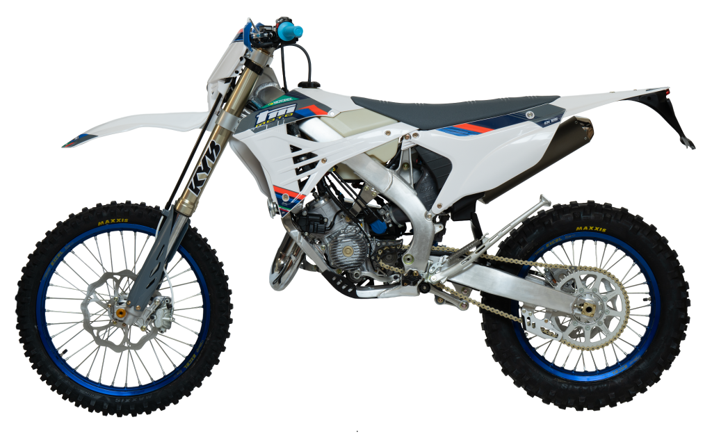 The high-end specification of all TM Racing machines is well-versed and this model year is no exception. The specification list for a ‘production machine’ is vast and features numerous high-quality components throughout. We have have several small changes and revisions to further enhance the chassis that was already designed to improve handling, weight balance, overall machine weight (reduced), rider ergonomics and the visual look. All variants chassis’ and sub-frames will once again be constructed using aluminium, with each engine ‘capacity’ / variant having a chassis unique to that engine displacement. This ‘tailoring’ of the chassis to engine allows TM Racing to design and build each machine for minimal weight, compactness, and better handling characteristics with mass centralisation specific to each model whether 2-stroke or 4-stroke. All chassis are constructed using the latest design elements that reduce overall chassis weight whilst maintaining maximum strength, matched to new revisions in chassis geometry / triple clamp angles that are specifically tailored to each model once again, allowing the best in handling characteristics for each model in the range. On all models, the now standard fitment KYB 48mm twin chamber fork, will continue to adopt the latest generation of internal friction reduction ‘coatings’ with some new internal settings to create a ‘softer’ feel for greater rider comfort and shock absorbtion. These latest generation forks are designed to give improved response for faster changes to the terrain, all still controlled by the more favourable spring and oil set-up which is still proving to give greater reliability and more consistent performance. The TM Racing shock absorber, made in house by the TM racing technicians, has seen some large internal changes over the last 2 years and will still adopt this latest ‘seal’ system designed to reduce friction and increase shock performance, also featuringwill be a brace of internal changes to increase smoothness, comfort and aid tracion. Combined with the latest swing-arms, revised linkage components and spindle diameters to limit and ‘control’ flex, the shock allows for a more progressive feel, giving improved track stability and maximising traction. The chassis and suspension components work together to achieve incredible handling characteristics on a multitude of surfaces, allowing for greater stability in all conditions, increasing traction and inspiring greater confidence to reduce lap-times. The aesthetic look of the machines will remain as per, where the latest chassis generation is not only ‘form’ but ‘function’, reducing the width of the bike reduced by 3cm to create a slimmer machine with better rider ergonomics and more freedom of movement. The current appearance of the latest generation model range is still one of the most striking to date, a mix of angles and curves that blend seamlessly into each other from front to rear. Beautiful, yet aggressive in its shaping, the body panels will feature a new decal scheme incorporating some brighter colour accents giving a more striking visual appearance.