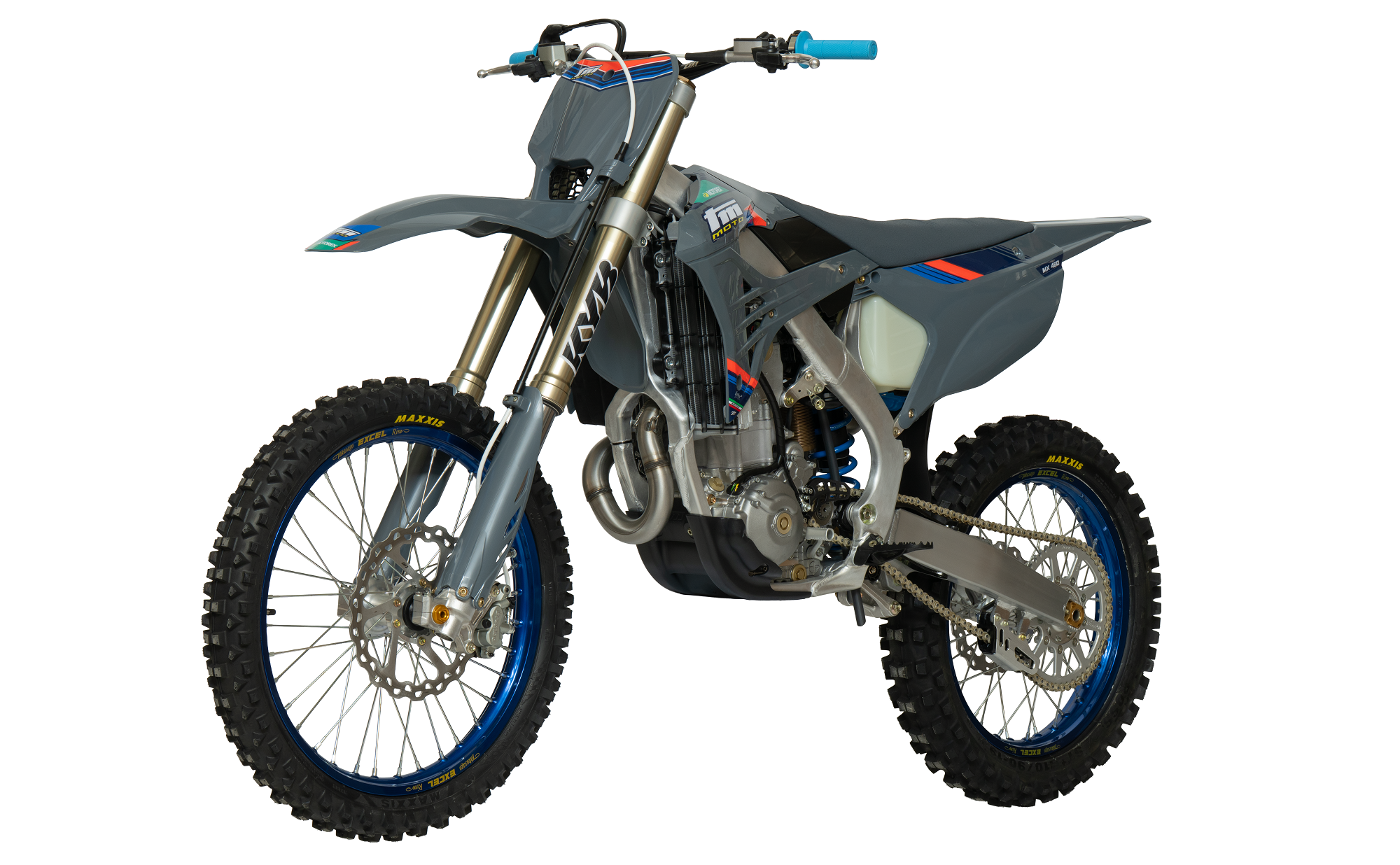 The high-end specification of all TM Racing machines is well-versed and this model year is no exception. The specification list for a ‘production machine’ is vast and features numerous high-quality components throughout. We have have several small changes and revisions to further enhance the chassis that was already designed to improve handling, weight balance, overall machine weight (reduced), rider ergonomics and the visual look. All variants chassis’ and sub-frames will once again be constructed using aluminium, with each engine ‘capacity’ / variant having a chassis unique to that engine displacement. This ‘tailoring’ of the chassis to engine allows TM Racing to design and build each machine for minimal weight, compactness, and better handling characteristics with mass centralisation specific to each model whether 2-stroke or 4-stroke. All chassis are constructed using the latest design elements that reduce overall chassis weight whilst maintaining maximum strength, matched to new revisions in chassis geometry / triple clamp angles that are specifically tailored to each model once again, allowing the best in handling characteristics for each model in the range. On all models, the now standard fitment KYB 48mm twin chamber fork, will continue to adopt the latest generation of internal friction reduction ‘coatings’ with some new internal settings to create a ‘softer’ feel for greater rider comfort and shock absorbtion. These latest generation forks are designed to give improved response for faster changes to the terrain, all still controlled by the more favourable spring and oil set-up which is still proving to give greater reliability and more consistent performance. The TM Racing shock absorber, made in house by the TM racing technicians, has seen some large internal changes over the last 2 years and will still adopt this latest ‘seal’ system designed to reduce friction and increase shock performance, also featuringwill be a brace of internal changes to increase smoothness, comfort and aid tracion. Combined with the latest swing-arms, revised linkage components and spindle diameters to limit and ‘control’ flex, the shock allows for a more progressive feel, giving improved track stability and maximising traction. The chassis and suspension components work together to achieve incredible handling characteristics on a multitude of surfaces, allowing for greater stability in all conditions, increasing traction and inspiring greater confidence to reduce lap-times. The aesthetic look of the machines will remain as per, where the latest chassis generation is not only ‘form’ but ‘function’, reducing the width of the bike reduced by 3cm to create a slimmer machine with better rider ergonomics and more freedom of movement. The current appearance of the latest generation model range is still one of the most striking to date, a mix of angles and curves that blend seamlessly into each other from front to rear. Beautiful, yet aggressive in its shaping, the body panels will feature a new decal scheme incorporating some brighter colour accents giving a more striking visual appearance.